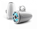 Задняя часть корпуса закрыта декоративным колпаком из алюминия с логотипом. Колпак можно ориентировать под любым углом для разных типов установки. Для монтажа используется широкий ассортимент крепежа различных типов ( продаётся отдельно). Акустический кабель выходит из корпуса через отверстие в крепеже, оставаясь наверху, сухим и скрытым от глаз. Рекомендуется профессиональная установка на лодку.