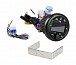 Компактная конструкция позволяет установить его практически в любом удобном месте или в стандартном приборном отверстии под судовой тахометр. Встроенный модуль Bluetooth позволяет слушать музыку со смартфона через аудиосистему, радиотюнер работает в диапазонах AM/FM, к USB-разъёму можно подключать накопители с файлами MP3 и WMA, iPhone или iPod или использовать его для зарядки любого смартфона, а к дополнительному AUX-входу можно подключить, например, плеер или любой другой источник музыки. Головное устройство имеет предельно простое и удобное управление. Вся необходимая информация выводится на ЖК- экран и легко читается как в тёмное время, так и на ярком солнечном свете. Встроенные усилители имеют выходную мощность 4х45 Вт, чего достаточно для озвучивания небольшого катера или лодки. При необходимости звуковой потенциал системы можно расширить подключением отдельных усилителей – для этого предусмотрены три пары линейных выходов, включая отдельные сабвуферные каналы.