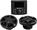 Комплект морской акустики состоит из головного устройства MRH335 с цветным дисплеем 3” и двух динамиков MRH-65B в чёрном корпусе.